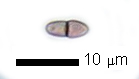 : ascósporas bicelulares, fusiformes, oliváceas a rosadas, células asimétricas, pared lisa.