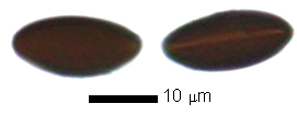 Descripción: ascósporas elíptico-fusiformes, negruzcas, a menudo con una línea longitudinal más clara.